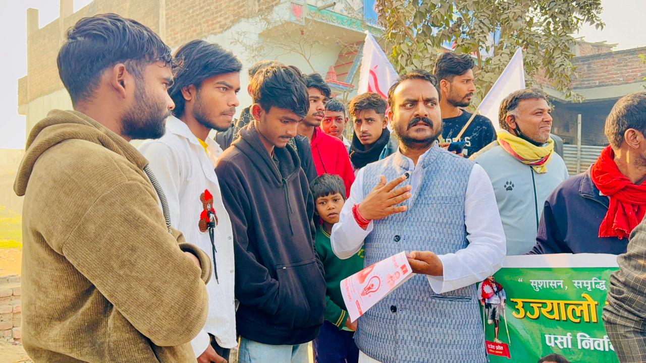 ।     उज्यालो नेपाल पार्टीका तर्फबाट पर्सा निर्वाचन क्षेत्र नम्बर १ का प्रतिनिधि सभा सदस्य उम्मेदवार रामकिशोर सिंह (पराग)ले आज वीरगञ्ज महानगरपालिका वडा नम्बर ३२ को चोरनी गाउँमा घरदैलो कार्यक्रम सम्पन्न गर्नुभएको छ।