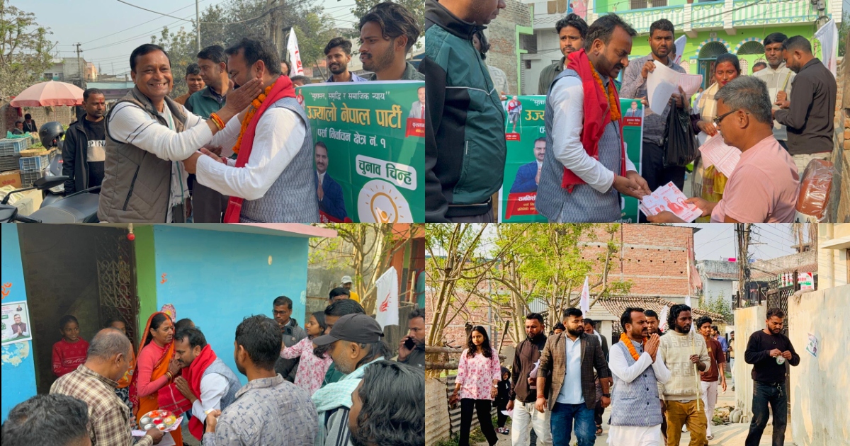 बीरगंज । उज्यालो नेपाल पार्टीका तर्फबाट पर्सा निर्वाचन क्षेत्र नम्बर १ का प्रतिनिधि सभा सदस्य उम्मेदवार रामकिशोर सिंह (पराग)ले आज वीरगञ्ज महानगरपालिका वडा नम्बर १२ को मुरली गाउँ तथा वडा नम्बर ०८ को मुरली बगैंचा र पानीटंकी टोलमा घरदैलो कार्यक्रम सम्पन्न गर्नुभएको छ।