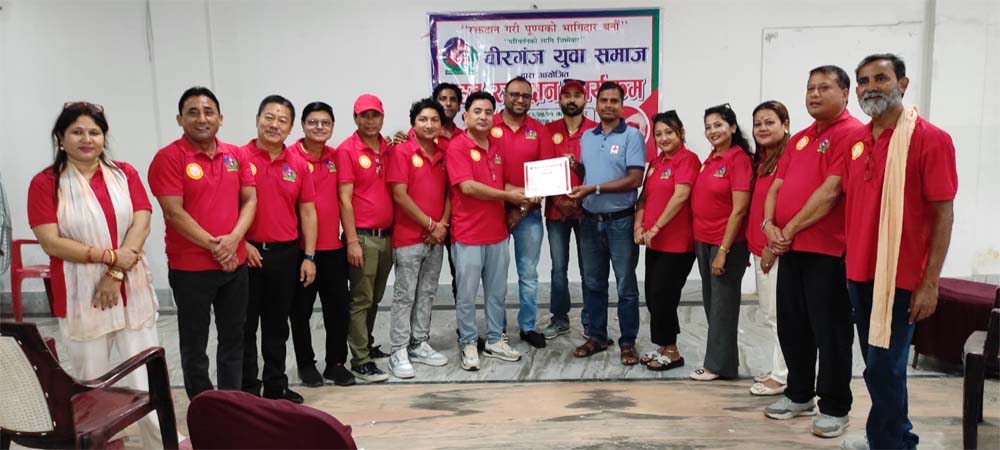 वीरगंज युवा समाजद्वारा आयोजित कार्यक्रममा १०३ जनाले गरे रक्तदान